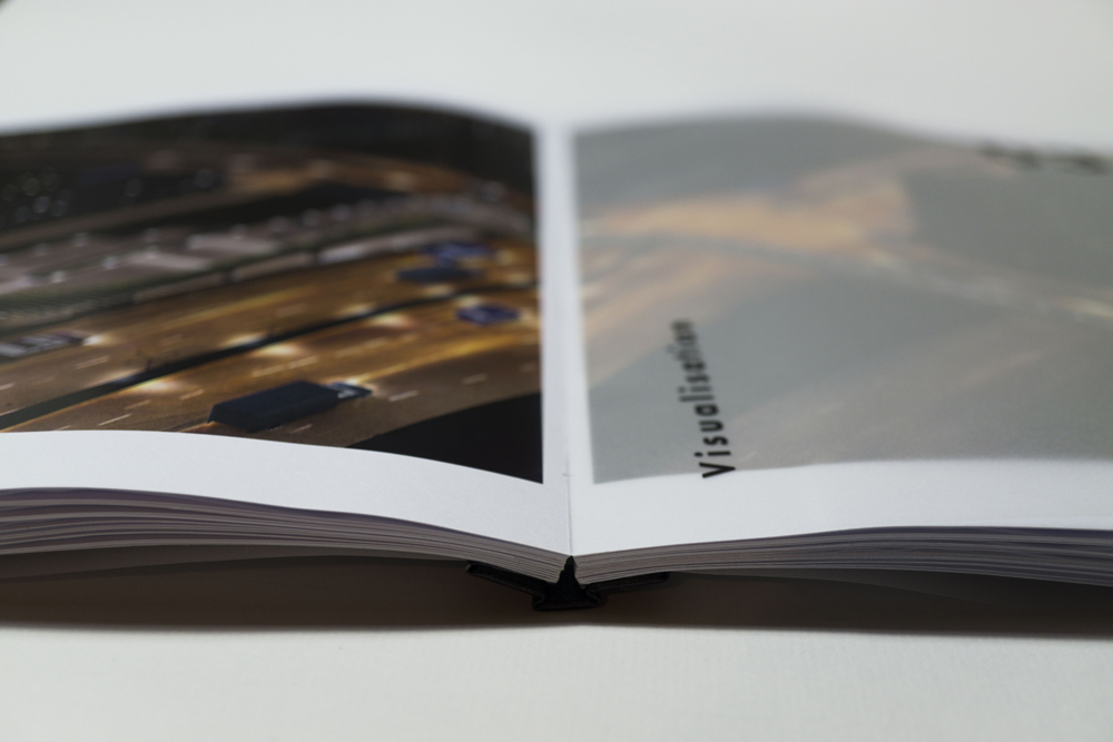 Graduate Architecture Portfolio – Single sheet binding which opens flat and has little to no visible stitching.